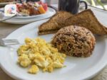 Gallo pinto is a famous and traditional breakfast dish made of rice and beans in Central American countries, especially Costa Rica and Nicaragua. Its name, meaning “spotted rooster,” reflects the appearance of the rice and beans.