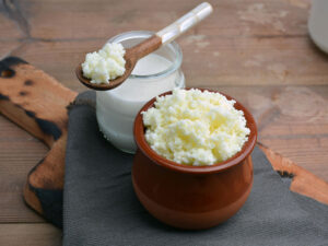 It is made by adding kefir grains to milk, which initiates fermentation. Kefir is known for its probiotic qualities, contributing to gut health and overall well-being.