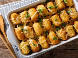 Baking is a popular way of preparing food in American cuisine, and a casserole (or baking dish) is a common cooking tool.