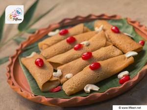 Pitha is a crepe-like dessert popular in West Bengal, with “pithe” as its local name. Pithe is often made with coconut, jaggery, milk, and rice flour. Sweet syrup, like date molasses, is pitha’s common accompaniment.