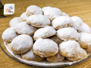 Kahk, or Kahk el-Eid, is an Egyptian small circular biscuit dusted with powdered sugar and traditionally savored during Eid al-Fitr. Besides Eid al-Fitr, kahk is also essential to special occasions, including Easter and weddings.