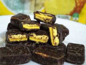 Pineapple lumps are a quintessential New Zealand confectionery, consisting of chewy pineapple-flavored candy coated in chocolate. This treat is a blend of sweet and fruity flavors, embodying the innovative and playful spirit of New Zealand’s snack culture.