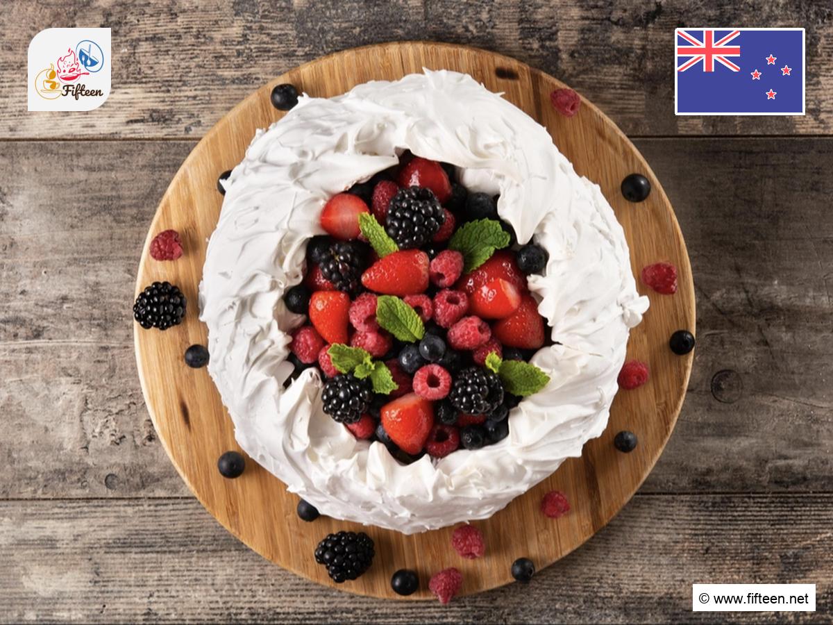 Pavlova is a meringue-based dessert that is a significant part of both New Zealand and Australian cuisine, named after the Russian ballerina Anna Pavlova. It features a crisp crust and soft, light interior, typically garnished with whipped cream and fresh fruit.