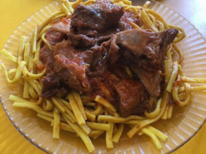TallarÃn paraguayo is a Paraguayan pasta dish with long, thick noodles lavished in a hearty tomato sauce, distinguished by either meat (often with bones) or free-range chicken browned and simmered to perfection.