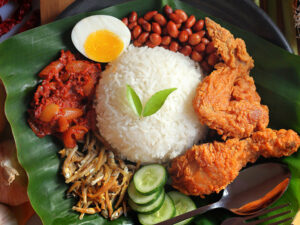 Originating as a Malaysian dish, nasi lemak is now a cornerstone of Singaporean cuisine, retaining the fatty flavors while having changes to adapt to local palates. There are two versions of the coconut milk rice dish in the country: Malay and Chinese.