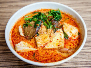 A standard serving of laksa contains thick rice noodles, chicken or seafood, and a rich coconut milk-based broth laden with spicy condiments. Whether for breakfast, lunch, or dinner, the spicy noodle dish is ready to please.