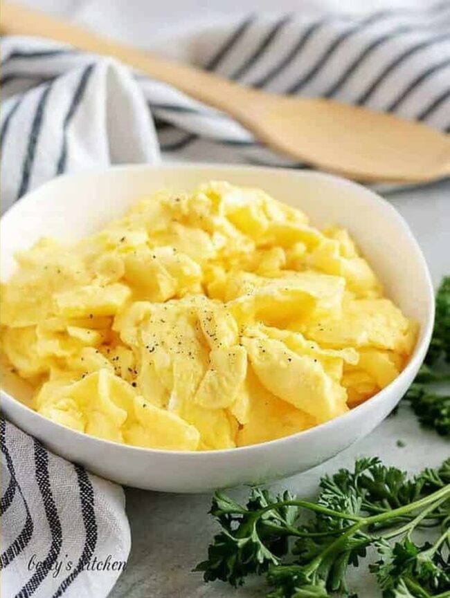 Rich and buttery, fluffy scrambled eggs offer a taste reminiscent of fine dining right in your kitchen.