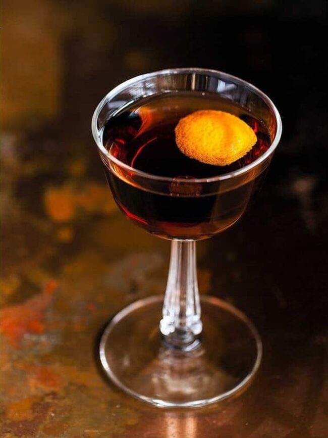 The unique twist comes from its higher ratio of sweet vermouth paired with Curacao and Bokers bitters, resulting in a flavor profile that feels both sophisticated and inviting.