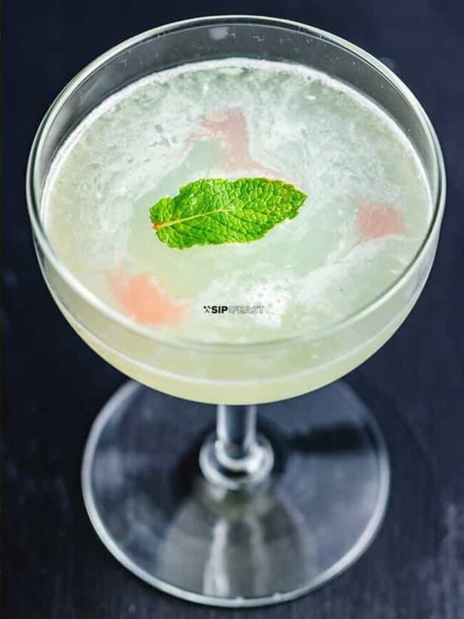Topped off with a mint leaf and delicate bitters, this cocktail looks as enchanting as it tastes.
