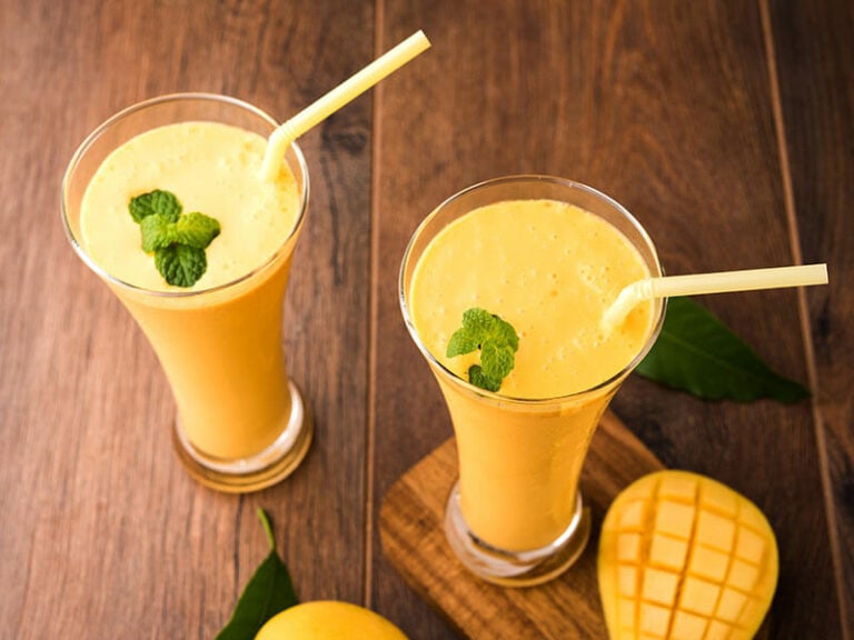 Lassi is a thick Indian yogurt-based beverage that features many aromatic ingredients for extra deliciousness, such as spices, flavored water, and fruits. Mango lassi is a common treat in many parts of India.