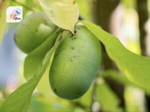 Pawpaw is a large, oval fruit in North America, with green to yellow skin and custard-like flesh. Its flavor is often described as a blend of banana, mango, and melon, offering a creamy and sweet taste.