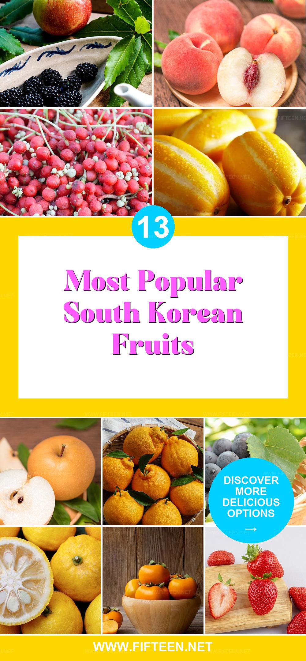 Popular fruits include persimmons, Korean pears, apples, and citruses like orange and tangerine, which are widely enjoyed for their freshness.