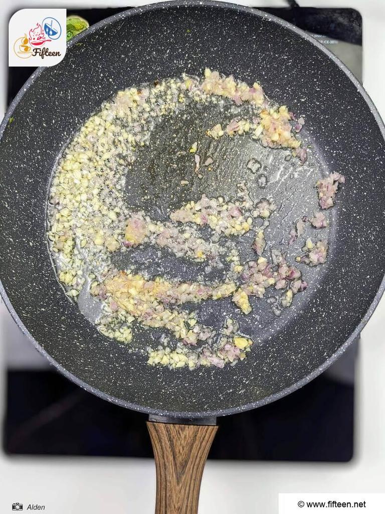 - In the skillet, sauté minced shallots and minced garlic in oil until fragrant.