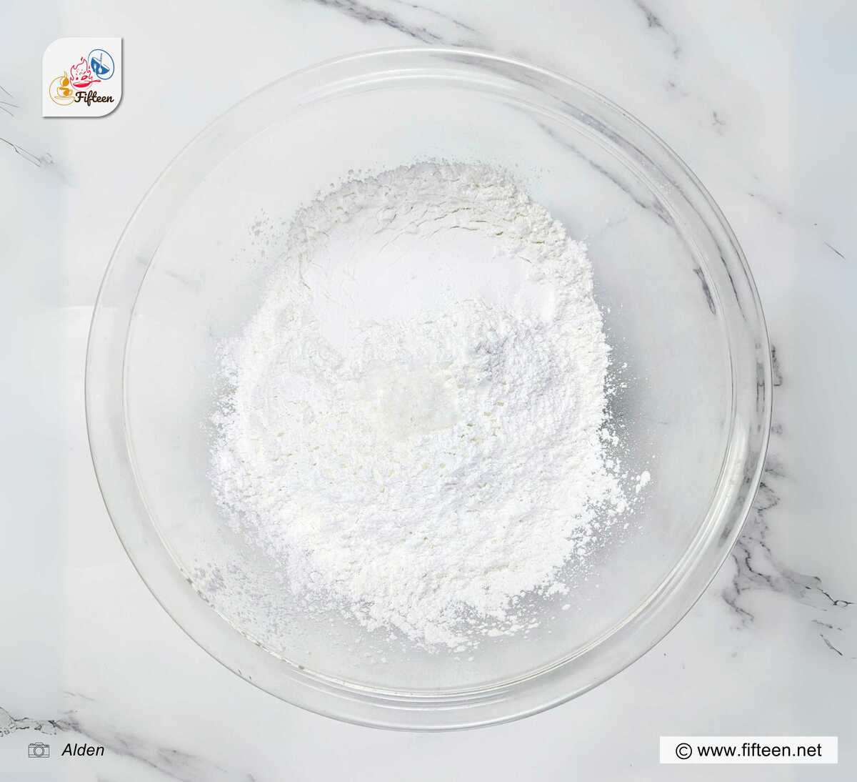 - In a large mixing bowl, combine rice flour, water, cornstarch, sugar, and salt. Mix well.