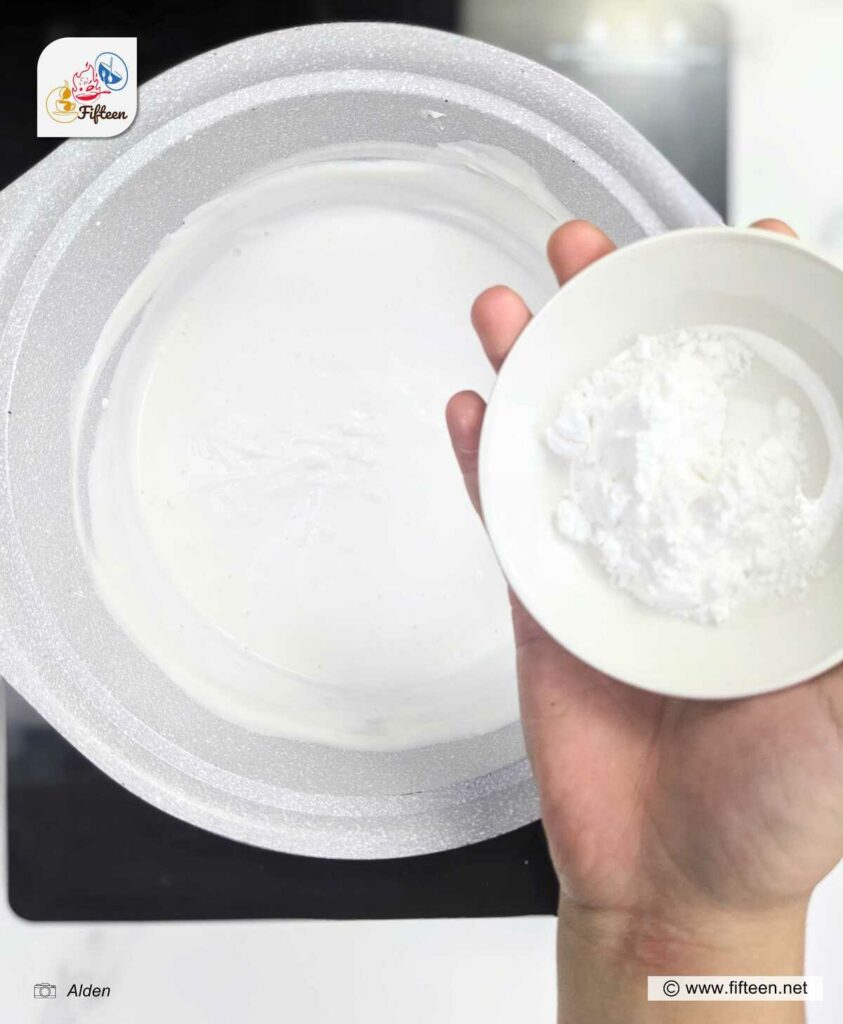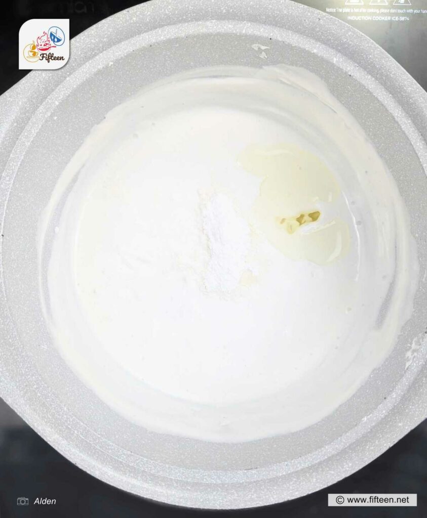 - Then, place a pot on the stove over medium heat and stir the mixture continuously in one direction.