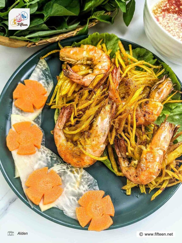 The magic of bánh tôm Hồ Tây lies in its carefully selected ingredients, which blend harmoniously to create its signature flavor.