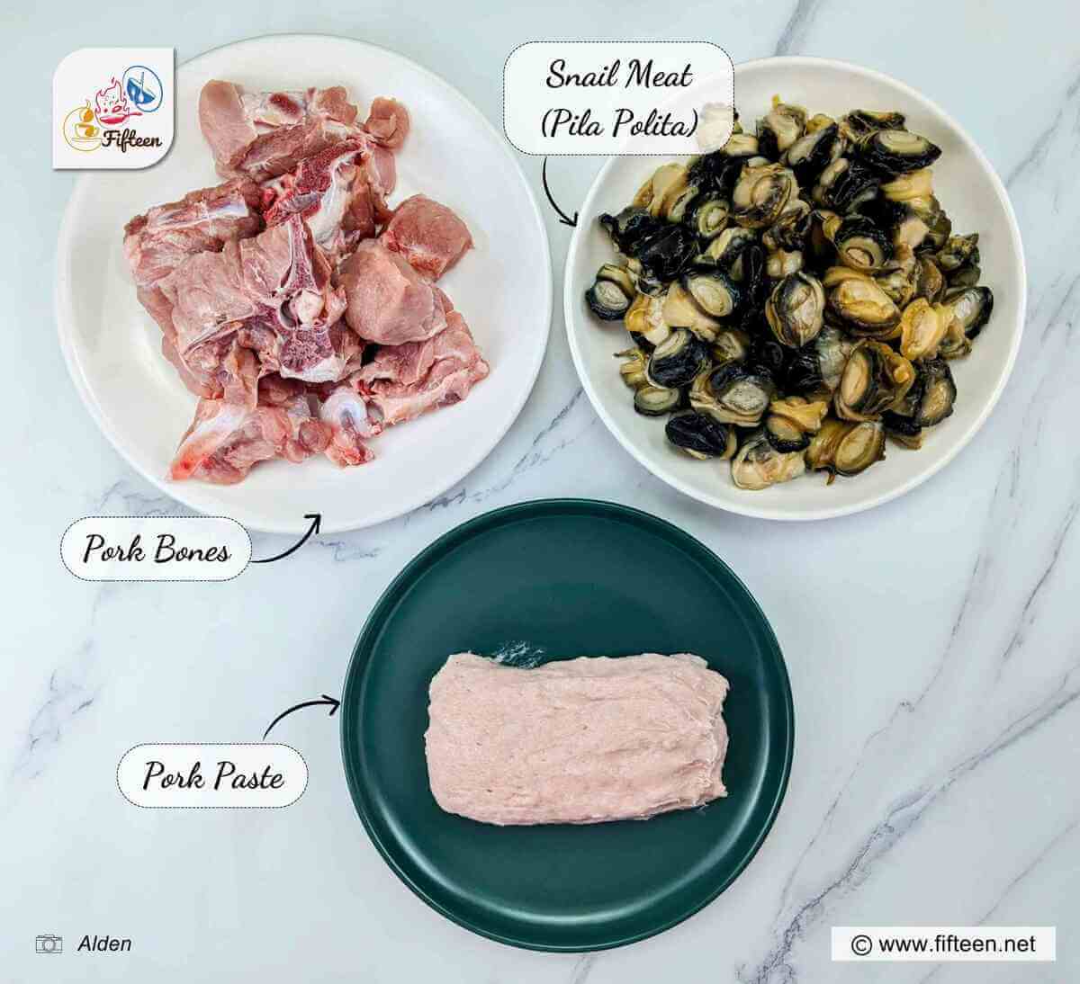 - Mix chopped snail meat with 0.22 pounds of pork paste, and season with 1 tbsp fish sauce, 0.5 tsp sugar, 1 tsp minced garlic, and 1 tsp shallot. Add ground pepper for extra spice (optional).