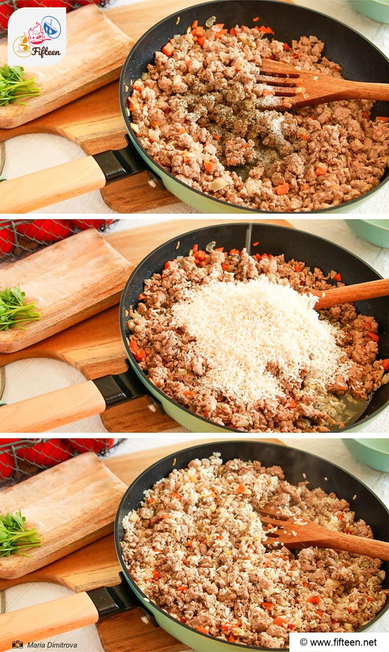 The peppers used in the recipe can be green or yellow, but red peppers are the sweetest, so they are more suitable. After being baked in the oven, they acquire an irresistible smoky taste. Together with the meaty filling, they become an incredible combination of flavors!