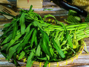 It has a mild, slightly sweet taste and crunchy texture when cooked. Water spinach is incredibly versatile in the kitchen, often stir-fried with garlic and chili or used in soups and stews.