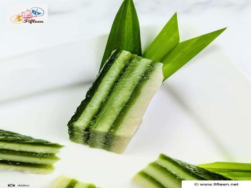 Make the pandan leaves batter by mixing 10.14 ounces of pandan juice with 4.93 ounces of tapioca flour, 0.52 ounces of all-purpose flour, 2 teaspoons of sugar, and 1.69 ounces of coconut milk.