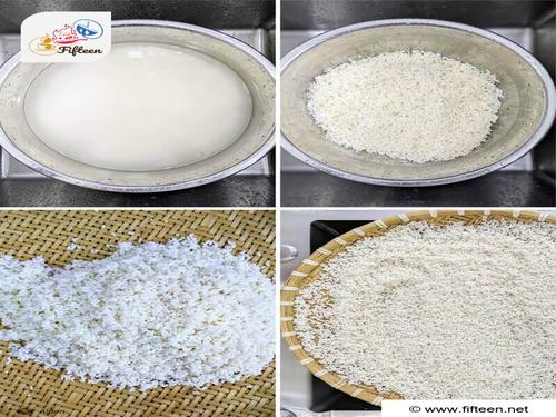 Soak the mung beans in water for 3 - 4 hours, then wash and drain. Cook the mung beans in water for 15 - 18 minutes. Add butter, sugar, salt, and coconut milk to the pot and stir well until thickened. Turn off the heat and let the mung bean mixture cool down.
